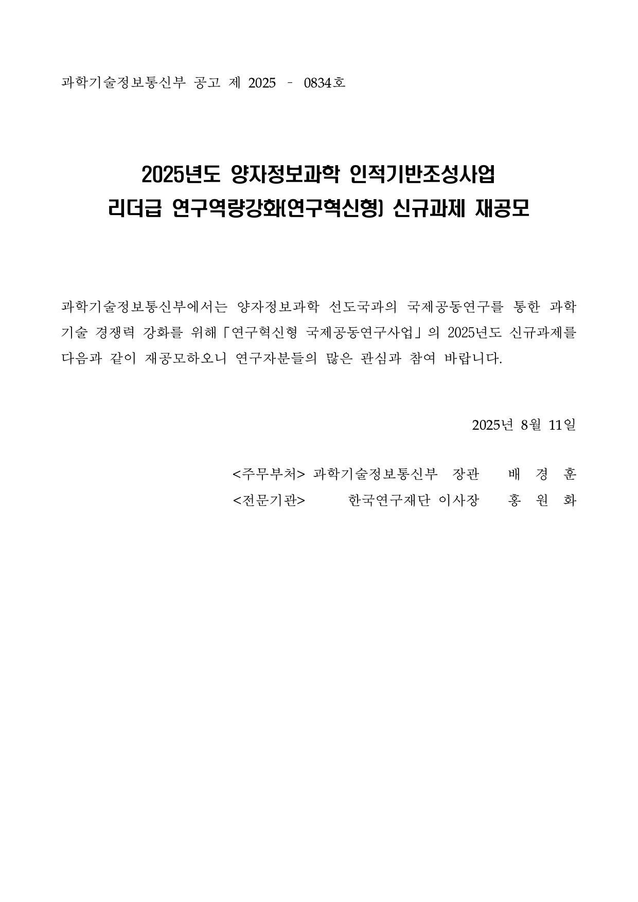 2025년도 양자정보과학 인적기반조성사업 리더급연구역량강화(연구혁신형) 신규과제 재공고.pdf